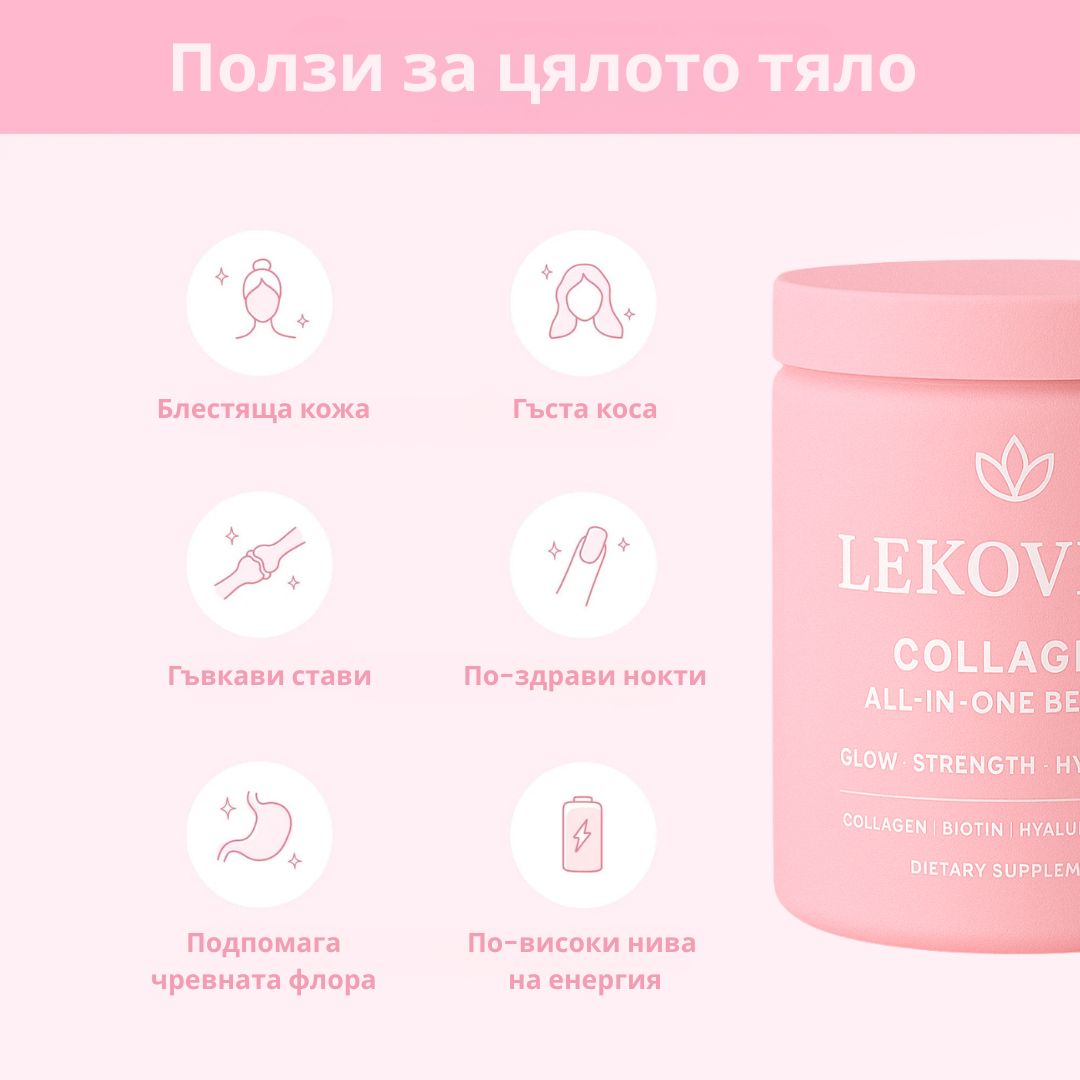 "Като дерматолог препоръчвам колагена заради мощната комбинация от чист колаген и хиалуронова киселина, което повишава хидратацията, изглажда фините линии и възстановява еластичността на кожата." - Д-р Георгиева